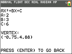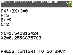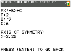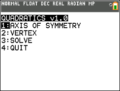 This is a program about quadratics, where you can find the Axis of Symmetry, the vertex, and the Solution to a Quadratic equation.