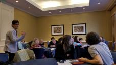 Two of the highlights of the conference were the opening and closing keynote addresses, both by math educators with inspiring messages. The opening keynote address was given by Dr. Ainissa Ramirez, a material scientist and engineer with degrees from Brown and Stanford. After a successful engineering career, she switched to evangelizing STEM, at Yale, via the TED organization, through books, and now at T^3. One of her most impactful messages was that failure should be embraced, not discouraged, and as startup founders and educators, that resonated with Thomas and I. As Dr. Ramirez encouraged, we hope that you too encounter and embrace failures as a learning opportunity! The closing address was presented by Dr. Valerie Camille Jones, who earned her Ph.D. in Mathematics Education at Columbia (and to our fascination, defended her thesis on "The Effect of Computer Gaming on Student Motivation and Basic Multiplication Fluency". Dr. Jones is also a math teacher in Georgia, an active cosplayer, and a highly awarded speaker. She discussed the importance of getting students to think of themselves as math-fluent and to enjoy math, and some strategies she has used in the classroom to make that possible. We were captivated by her successes to date, her enthusiasm for #MathEsteem, and her self-designed outfits and impressive cosplay.