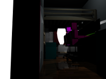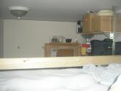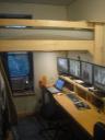 I still need a ladder for my bed; my current method is to climb onto the desk. Other than that, it's just about set, and I'm finding it a great place to work. Oh, and XP 64-bit is still giving me some agita about the four monitors with frequent BSODs, so I need to resolve that at some point. :/