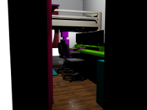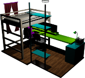 I still need a ladder for my bed; my current method is to climb onto the desk. Other than that, it's just about set, and I'm finding it a great place to work.